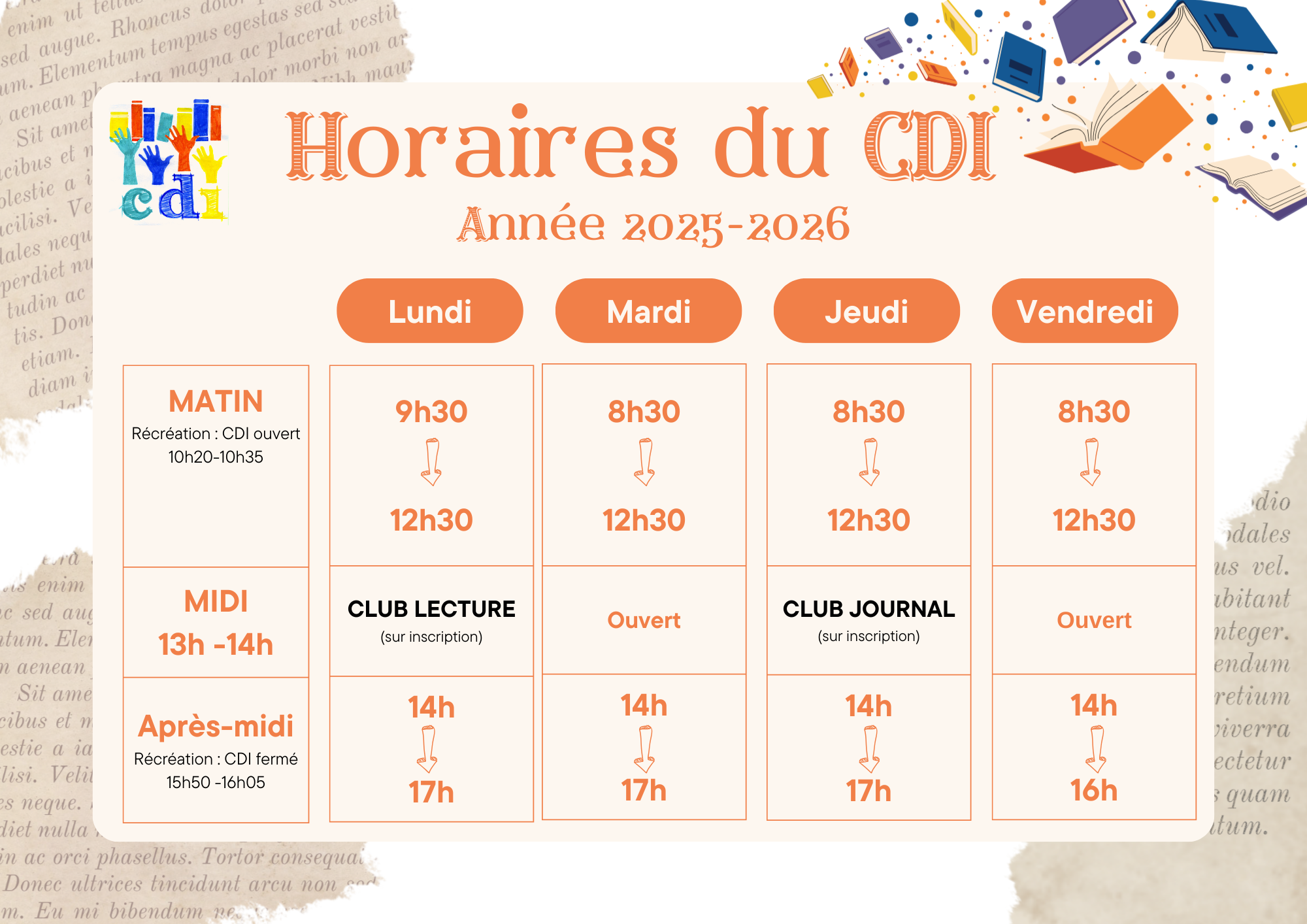 Horaires d’ouverture du CDI